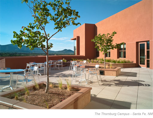This featured green building is the Thornburg Campus in Santa Fe. The building was designed to provide a sustainable and comfortable environment for Thornburg’s employees while taking advantage of the climate, daylight, and views of its Santa Fe location. The project was designed by Legoretta + Legoretta and Dekker/Perich/Sabatini.