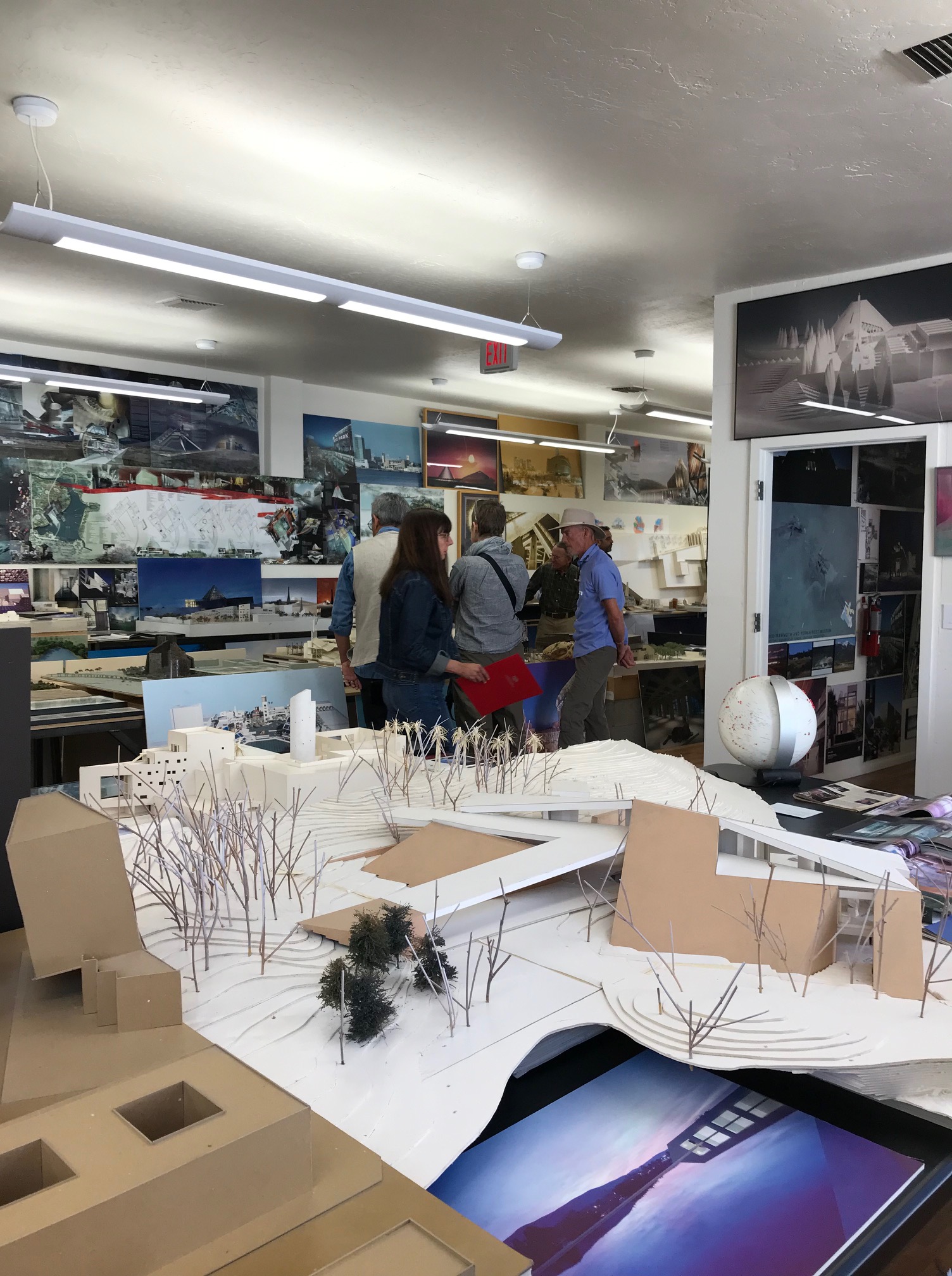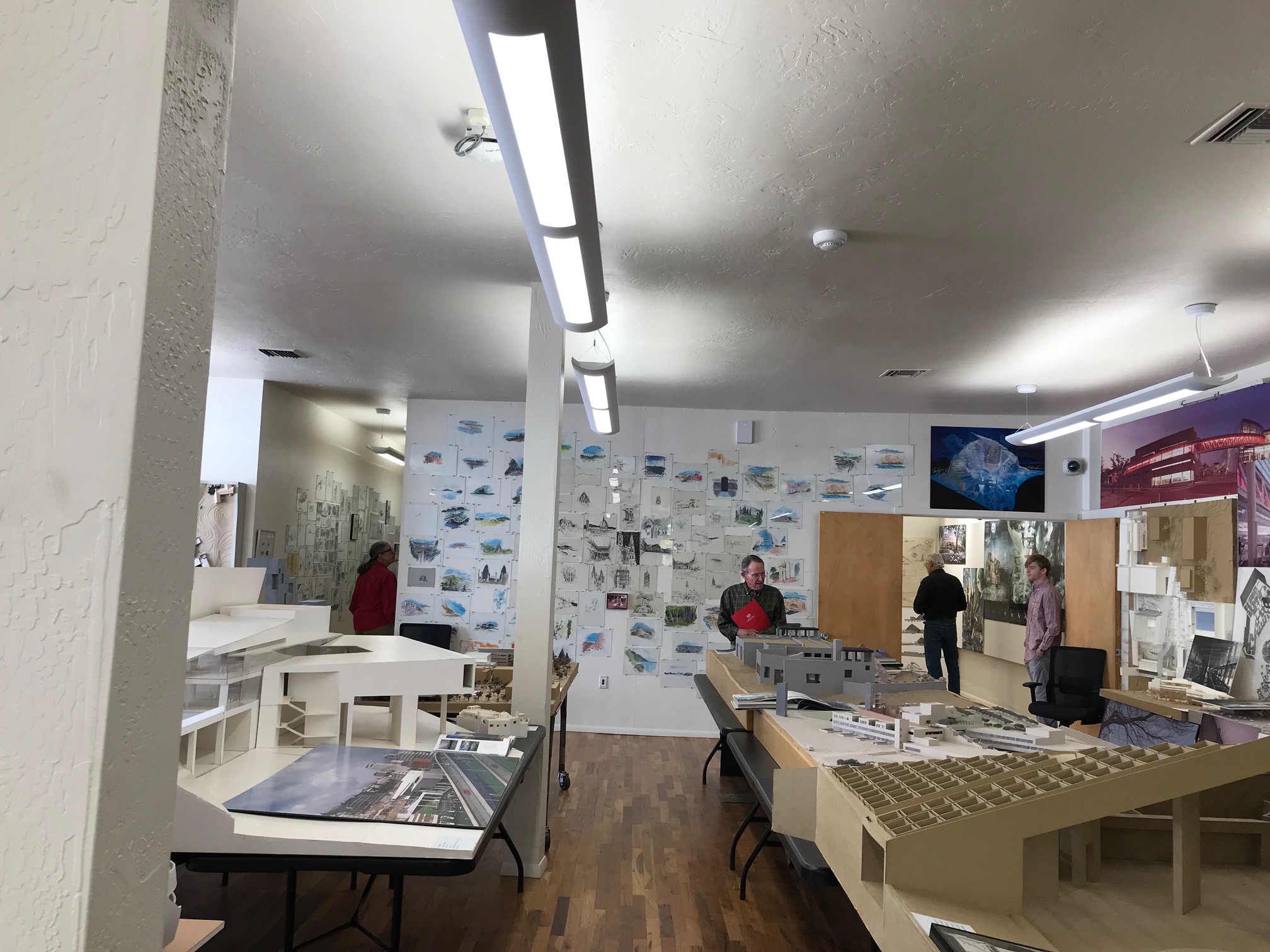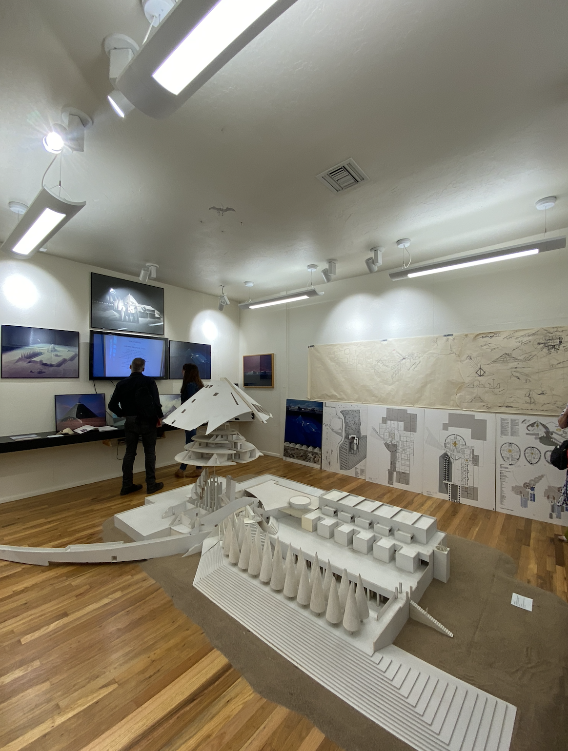 We started at the Predock Center, led by Dr. Audra Bellmore and her team. On display were models, sketches, drawings, collages, motors and memorabilia – artifacts from a long and storied architectural practice. The tour provided an opportunity for the architecture students to study buildings commissioned from across the globe. And Antoine Predock was digitally present – touring and visiting with colleagues.