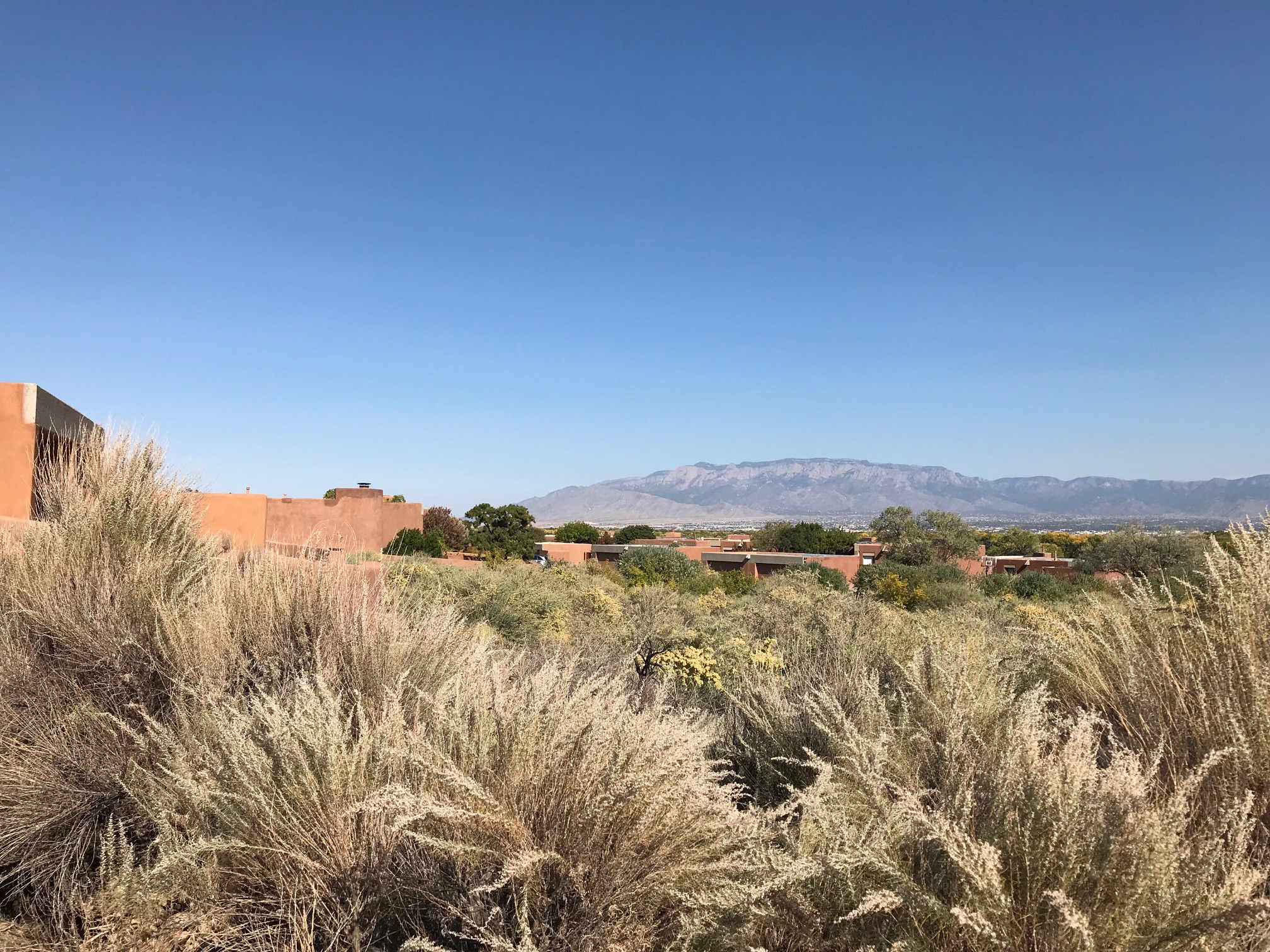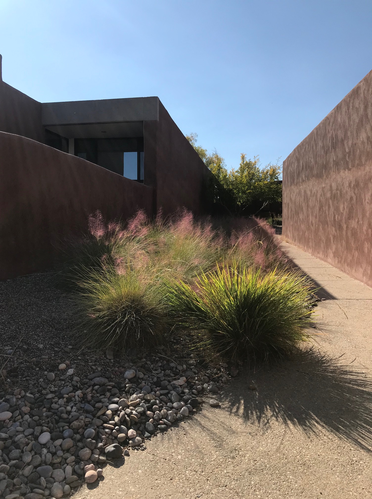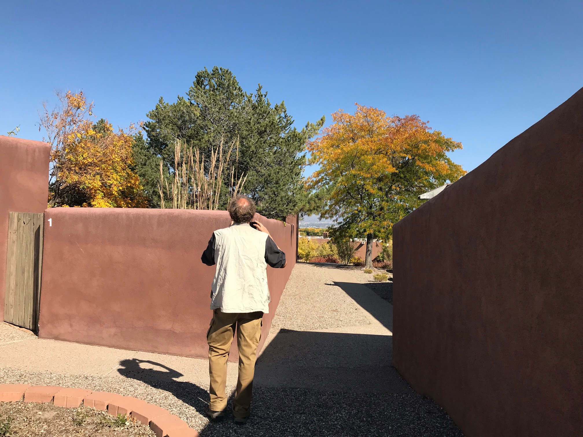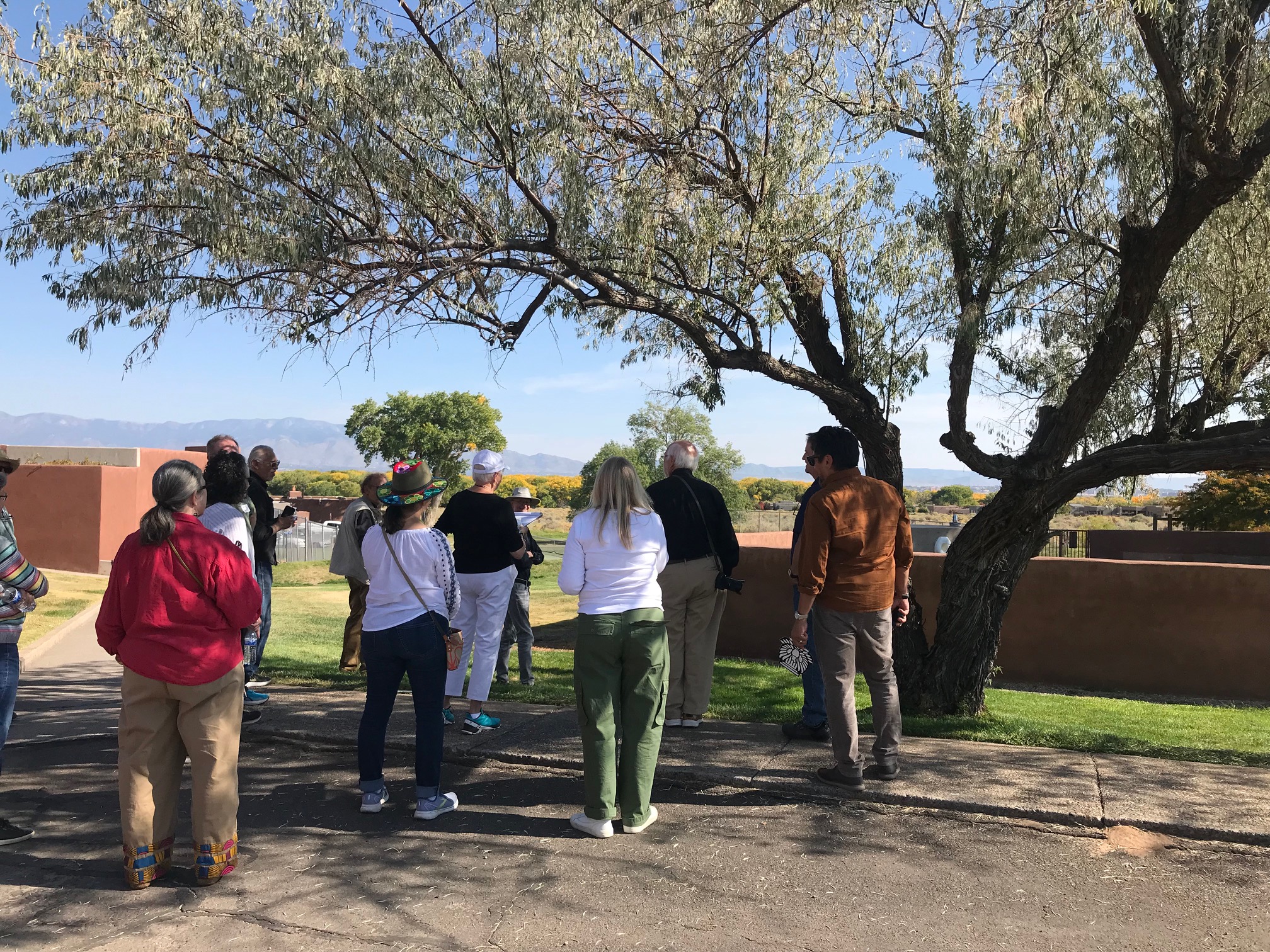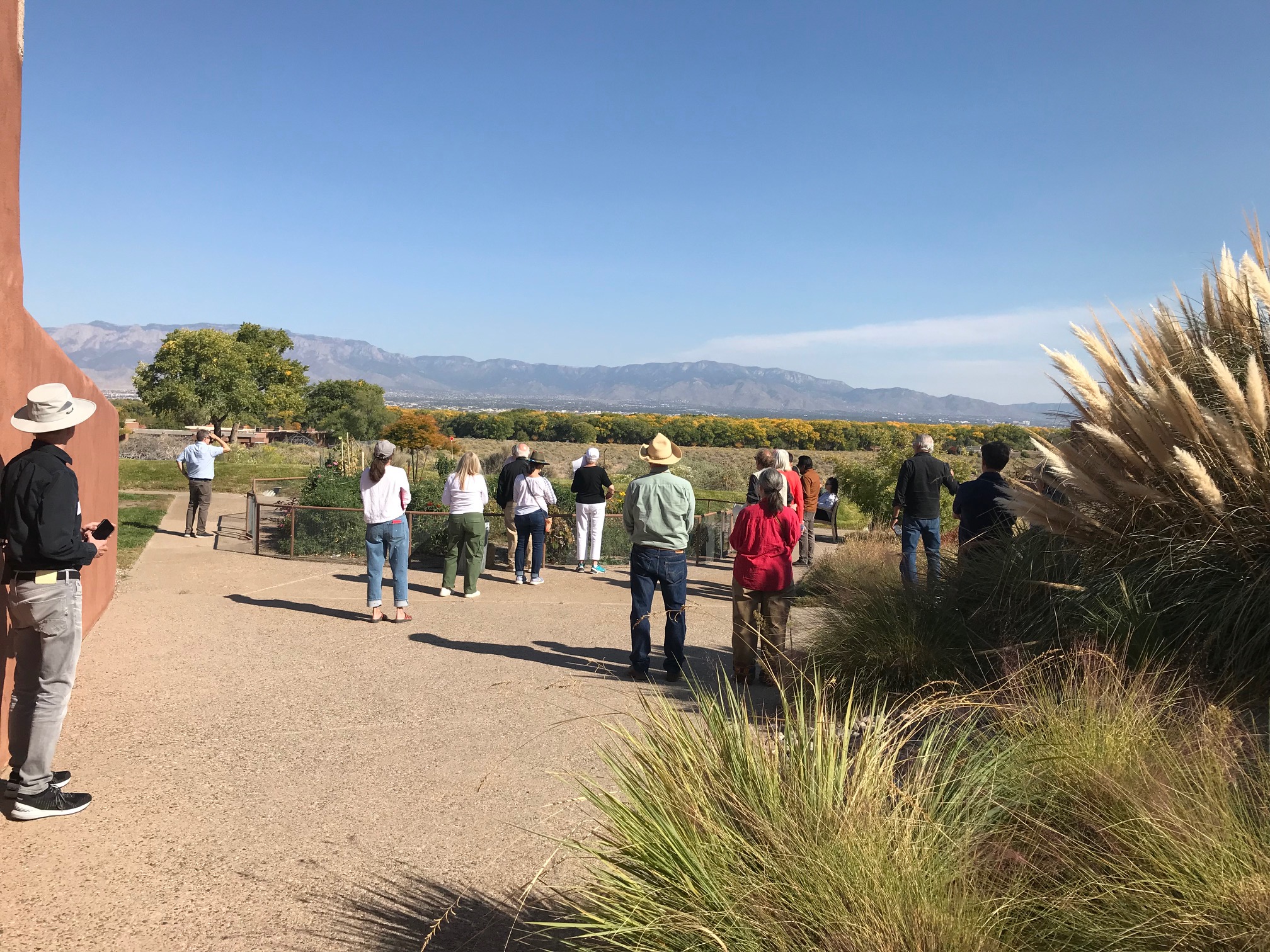 In the afternoon we met at La Luz, the first and ground-breaking commission of Predock’s, now over 50 years old. The community is made up of 96 clustered adobe townhouses, communal plazas and recreational spaces, all with stunning views to the Sandia Mountains and Rio Grande bosque. We toured three different units: one with a recent, modern interior renovation, another restored to its original state, and a third unit which was two-stories. Professor Emerita Anne Taylor and fellow resident guides talked not only about the sustainable housing design but also about the landscape transition which reflects a greater awareness of our precious limited water and climate change. La Luz is internationally recognized and is on the State Register of Cultural Properties.